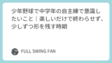 野球が苦しくなりすぎないこと。