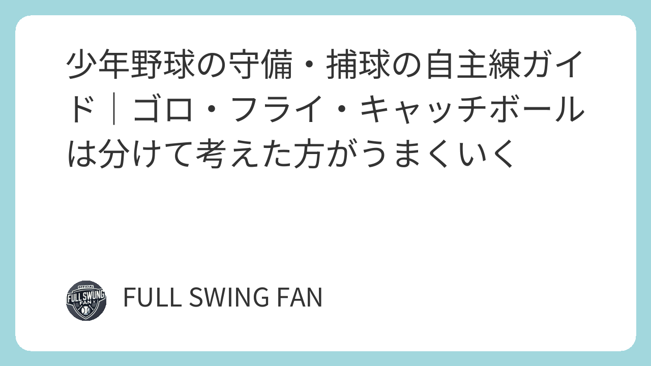 守備・捕球の自主練をどう整理すればいいのかをまとめます。