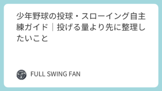 自宅練習・トレーニング 少年野球の投球・スローイング自主練ガイド|投げる量より先に整理したいこと 少年野球の投球・スローイング自主練を、肩肘を壊さない考え方、距離と回数、投げない日の重要性まで分かりやすく整理した家庭向けガイドです。 2026.04.08 自宅練習・トレーニング